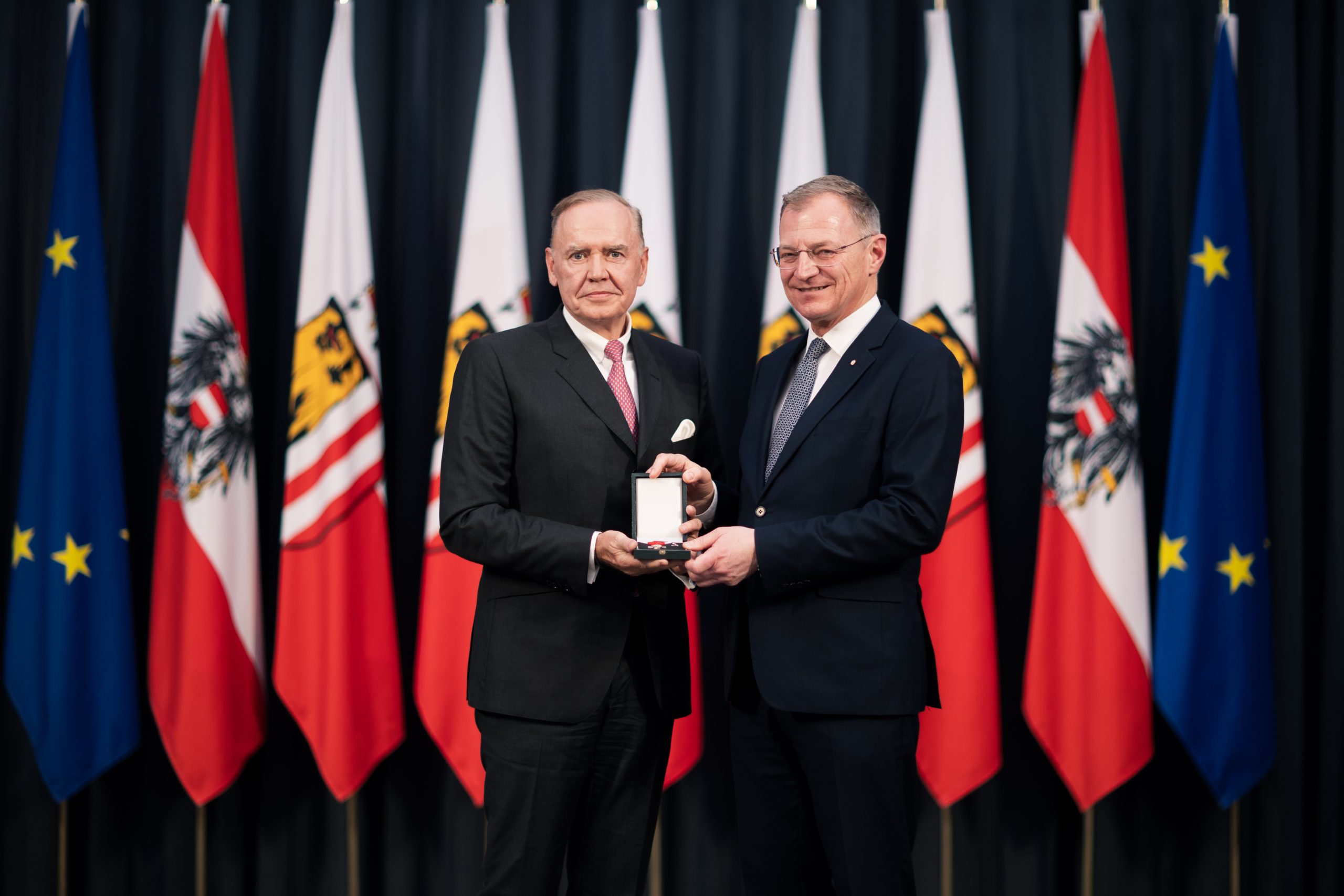 Vor zahlreichen geladenen Gästen würdigte der Landeshauptmann in seiner Laudatio die vielfältigen gemeinnützigen Verdienste von Prof. Löw im Salzkammergut. Er wünschte dem Ausgezeichneten auch für die Zukunft viel Erfolg und honorierte abschließen sein herausragendes Engagement.