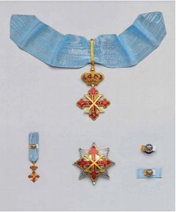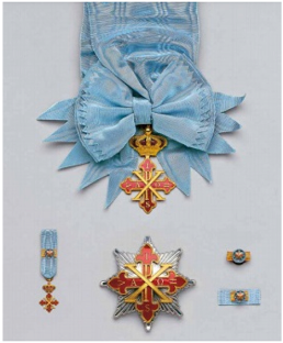Bruststern und Ordensschärpe für Träger des Großkreuzes mit Miniatur, Bandschnalle und Rosette