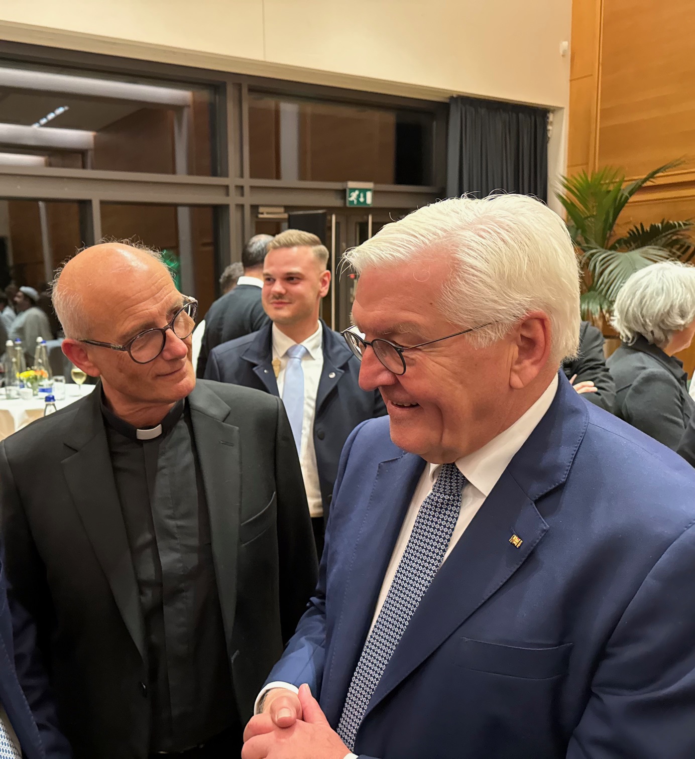 Prior Prof. Dr. Thomas Schwartz mit Bundespräsident Frank-Walter Steinmeier beim Michaelsempfang am 10. November 2025 in Berlin