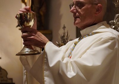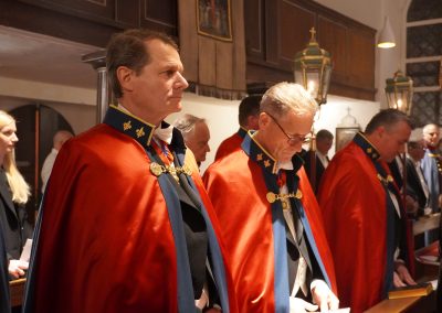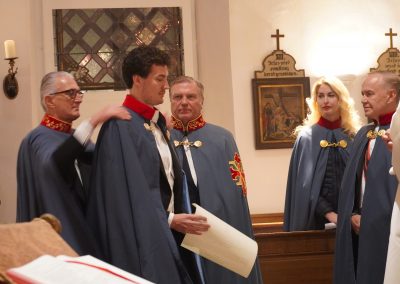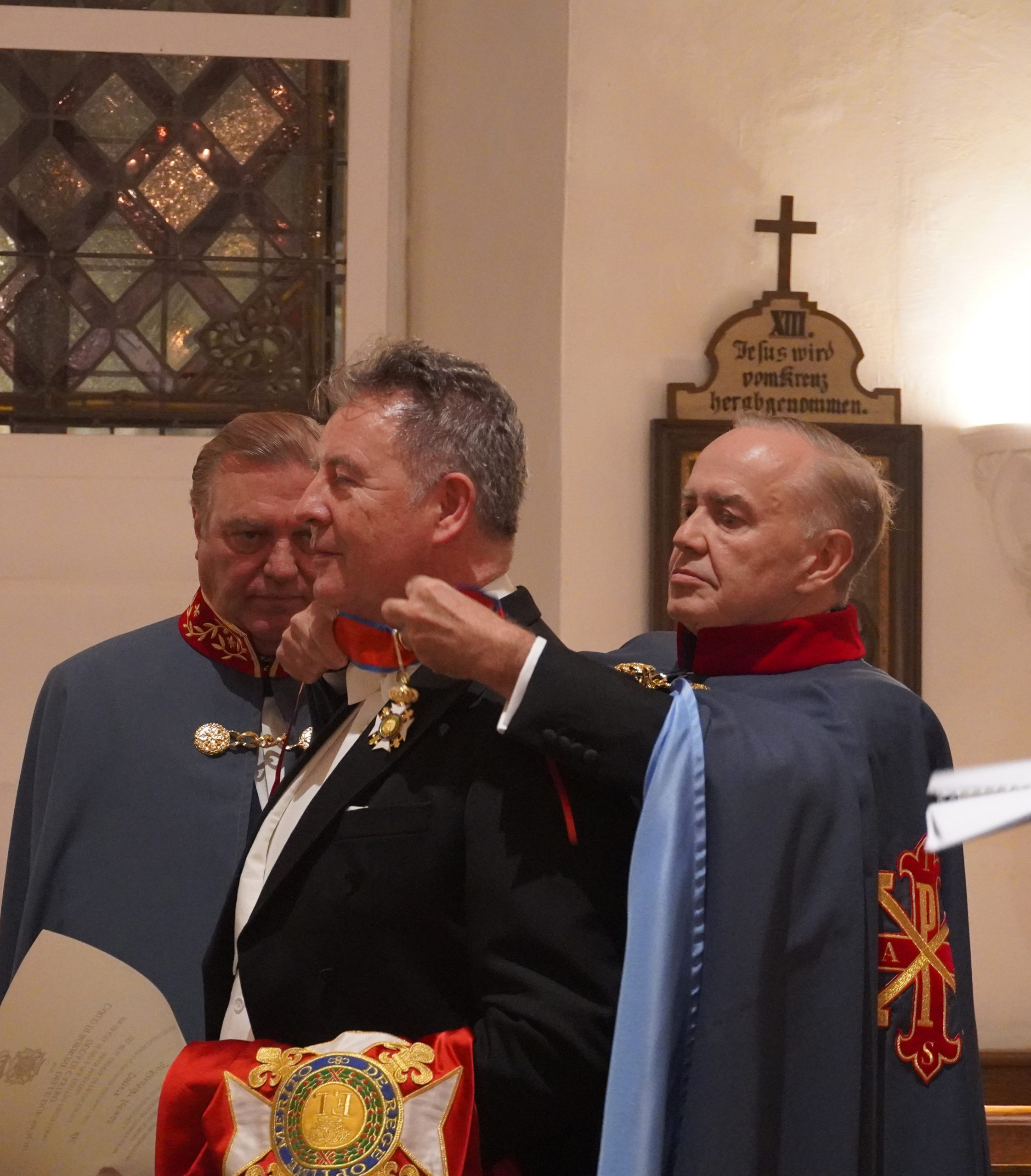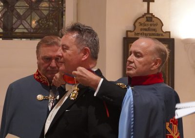 Die Festlichkeiten begannen mit einem feierlichen Gottesdienst in der ehrwürdigen Schlosskirche zelebriert vom Prior der Deutschen Delegation, Prof. Dr. Thomas Schwartz. Die Investitur der neuen Mitglieder, als Höhepunkt der Zeremonie fand in diesem heiligen Rahmen statt. Es wurden drei neue Mitglieder in den Konstantinischen Orden und drei in den Königlichen Franziskusorden aufgenommen. In seiner Predigt wandte sich der Prior direkt an die neuen Mitglieder: „Ihr, liebe, neuinvestierte Mitglieder macht mit der Aufnahme in unsere beiden Orden deutlich, dass auch Ihr von der Überzeugung geprägt seid, dass Gott in der Geschichte dieser Welt und unseres Lebens einzugreifen vermag.“