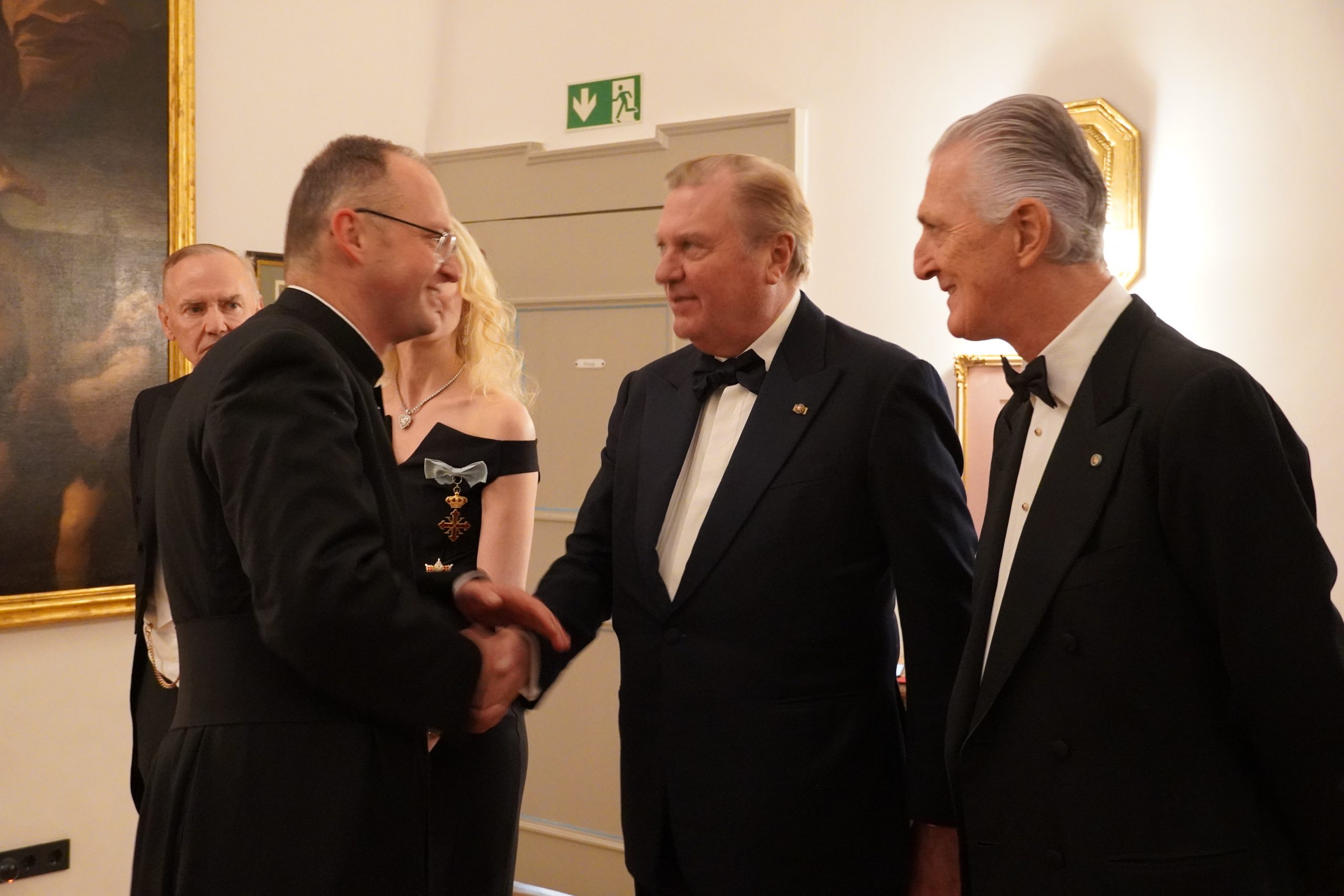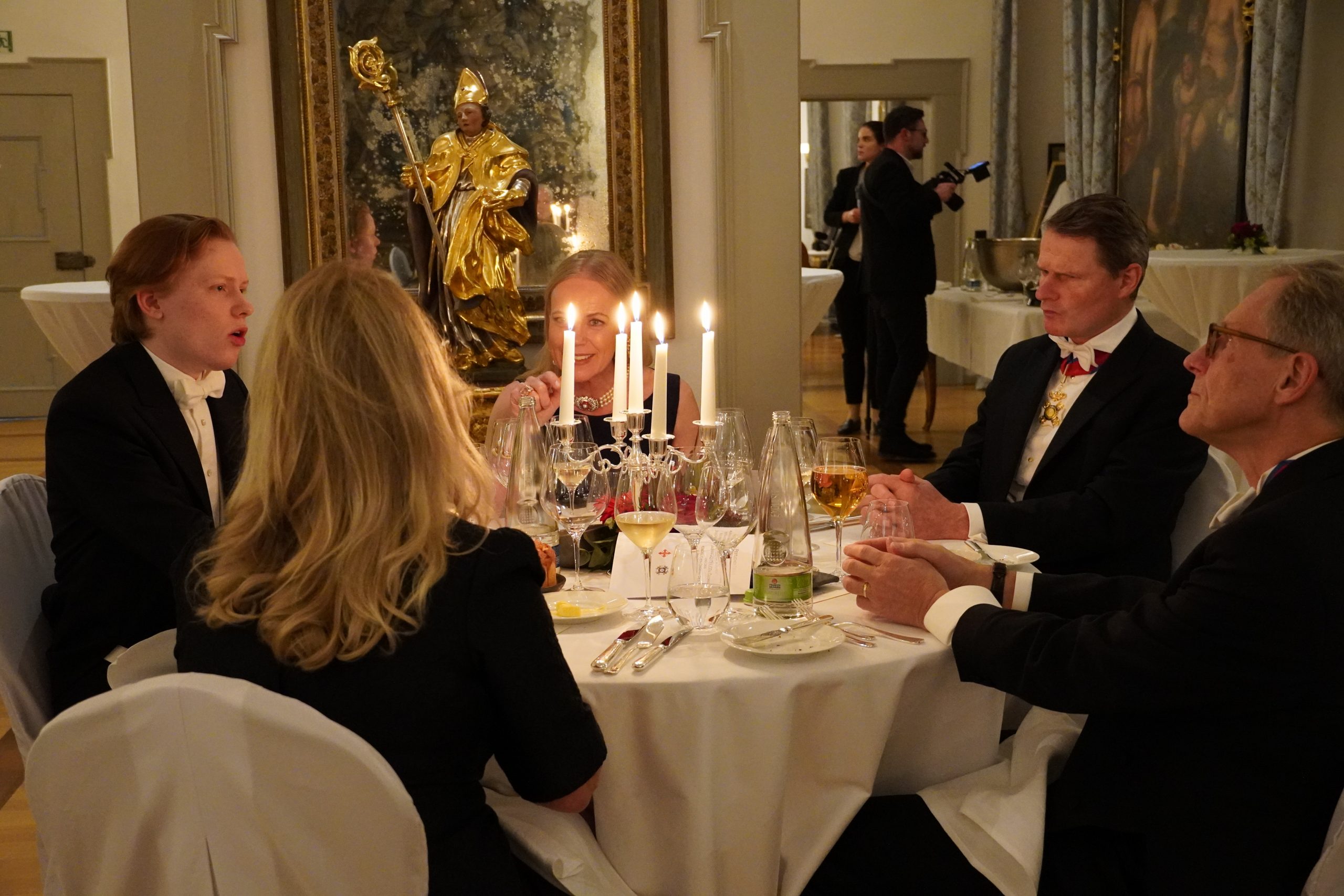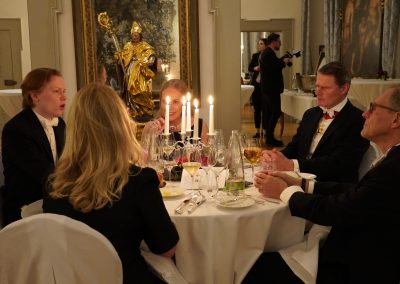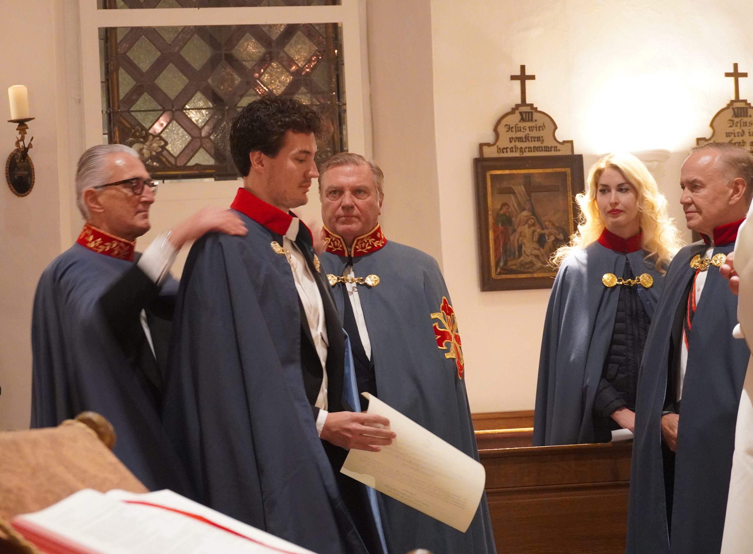 Nach der Investitur wurde zu einem festlichen Empfang geladen, der in den beeindruckenden Räumlichkeiten von Schloss Frankenberg stattfand. Hier bot sich die Gelegenheit für Austausch und Begegnungen, während die Gäste die elegante Atmosphäre des Schlosses genossen. Der Abend fand seinen krönenden Abschluss in einem Galadîner.