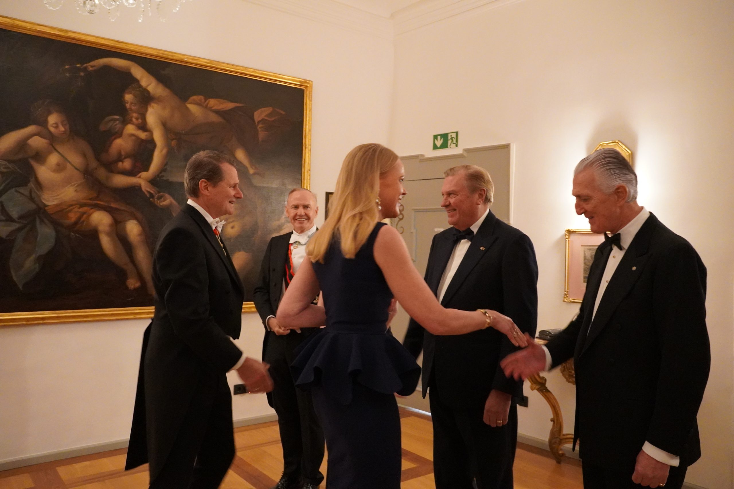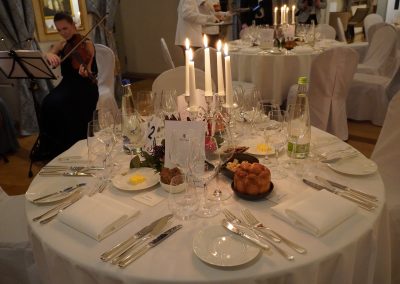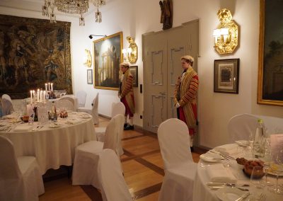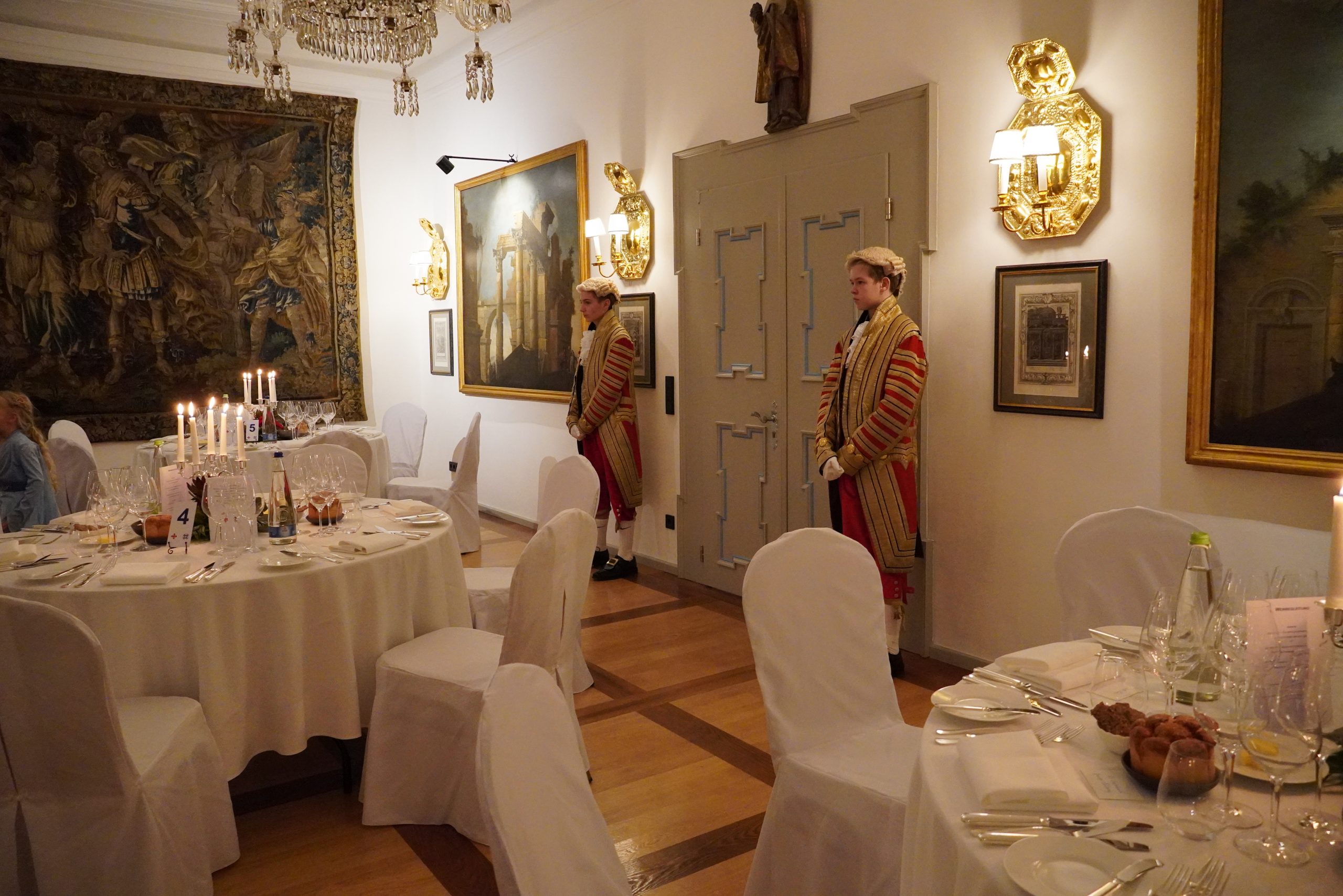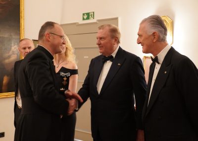 Nach der Investitur wurde zu einem festlichen Empfang geladen, der in den beeindruckenden Räumlichkeiten von Schloss Frankenberg stattfand. Hier bot sich die Gelegenheit für Austausch und Begegnungen, während die Gäste die elegante Atmosphäre des Schlosses genossen. Der Abend fand seinen krönenden Abschluss in einem Galadîner.